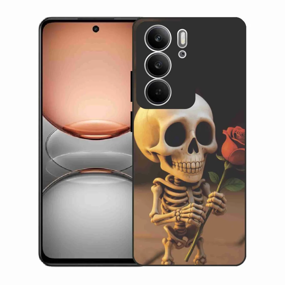 Pružný gélový obal mmCase s obrázkom na Realme C75 - kostlivec s ružou