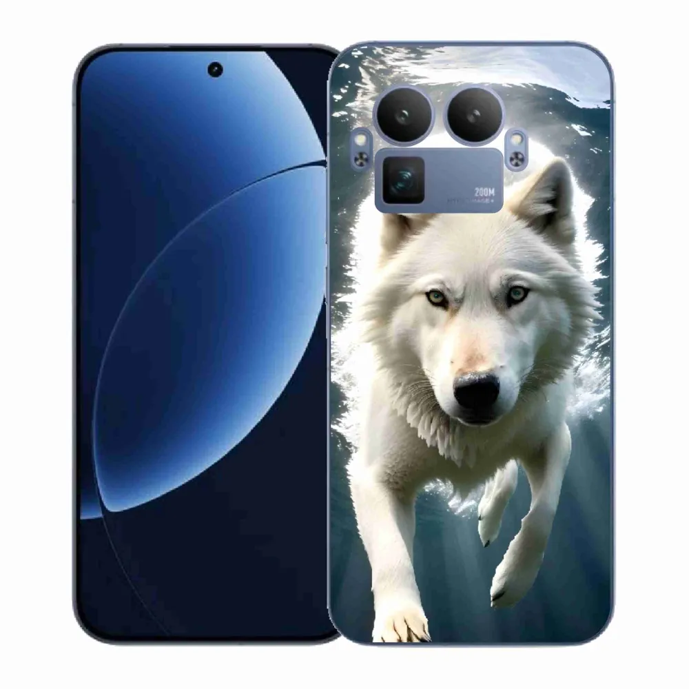 Pružný gélový obal mmCase s obrázkom na Realme GT 8 Pro - biely vlk