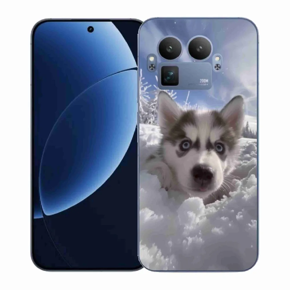 Psie púzdro na Realme GT 8 Pro - husky v snehu poskytuje všetky výhody gélových obalov, a to v zaujímavom dizajne.