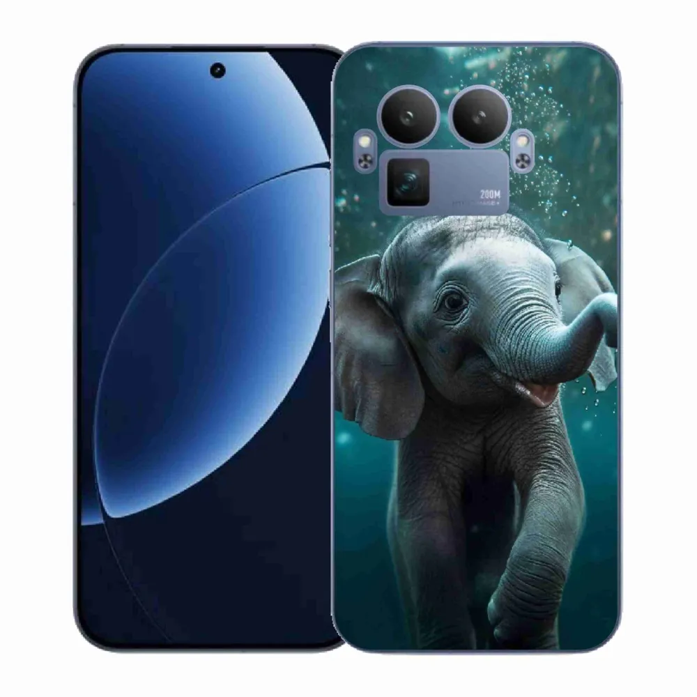 Zvieracie púzdro na Realme GT 8 Pro – sloník pod vodou poskytuje všetky výhody gélových obalov, a to v zaujímavom dizajne.