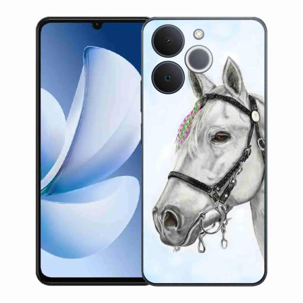 Pružný gélový obal mmCase s obrázkom na Realme Note 70T - biely kôň 1