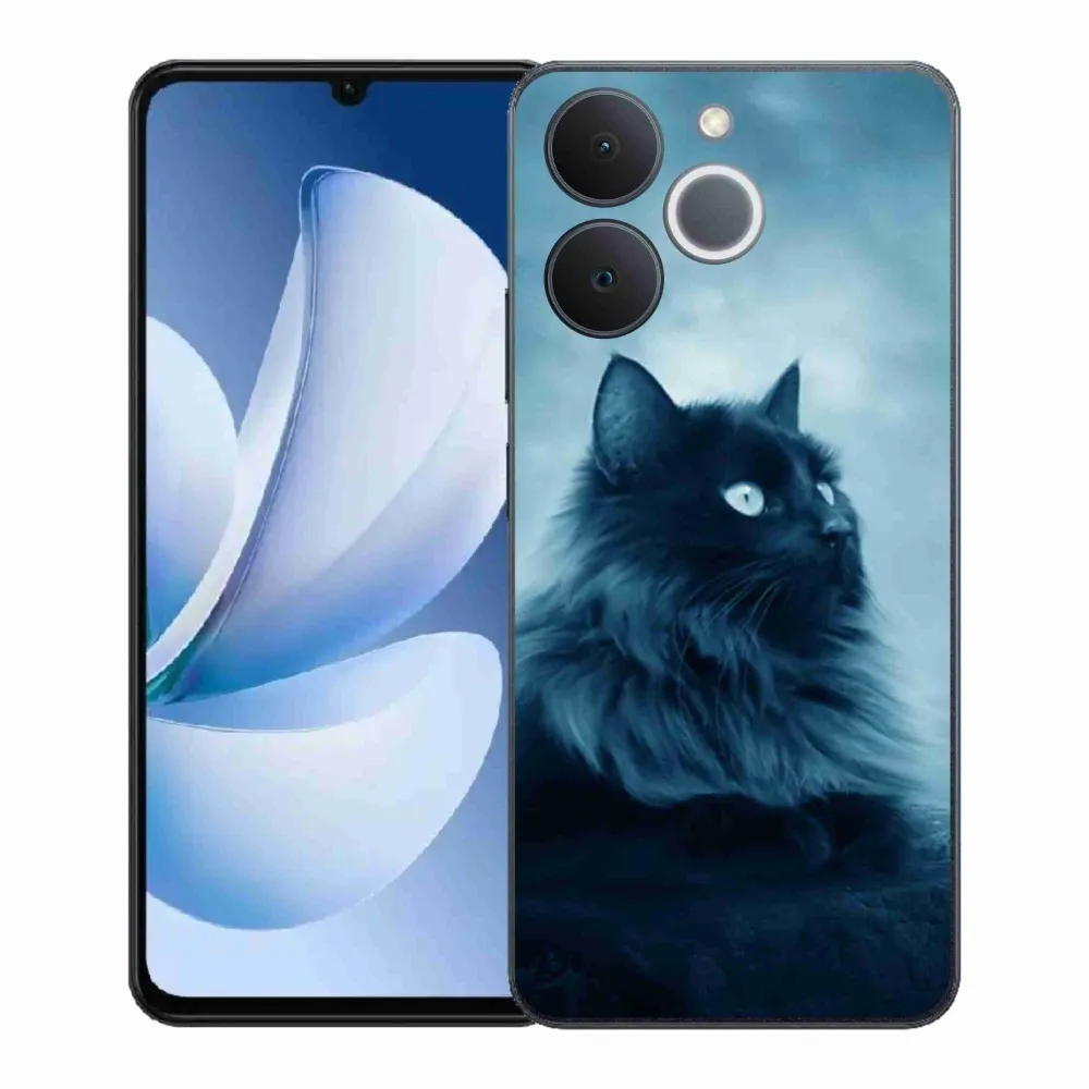 Pružný gélový obal mmCase s obrázkom na Realme Note 70T - čierna mačka 1