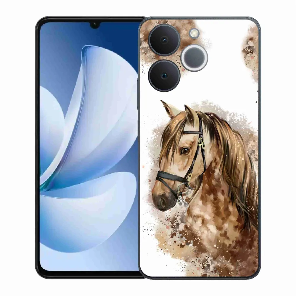 Pružný gélový obal mmCase s obrázkom na Realme Note 70T - hnedý kreslený kôň