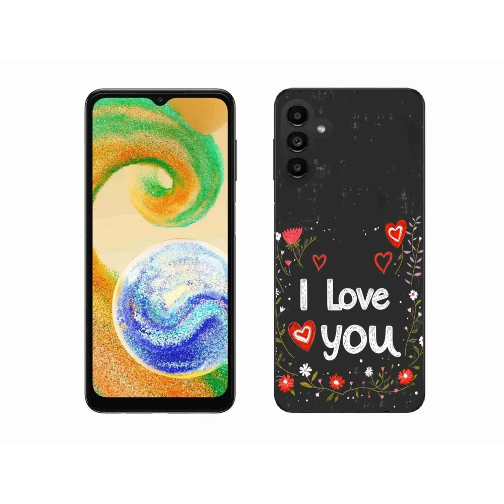 Púzdro na Samsung Galaxy A04s - I love you čierne pozadie poskytuje všetky výhody gélových obalov, a to v zaujímavom dizajne.