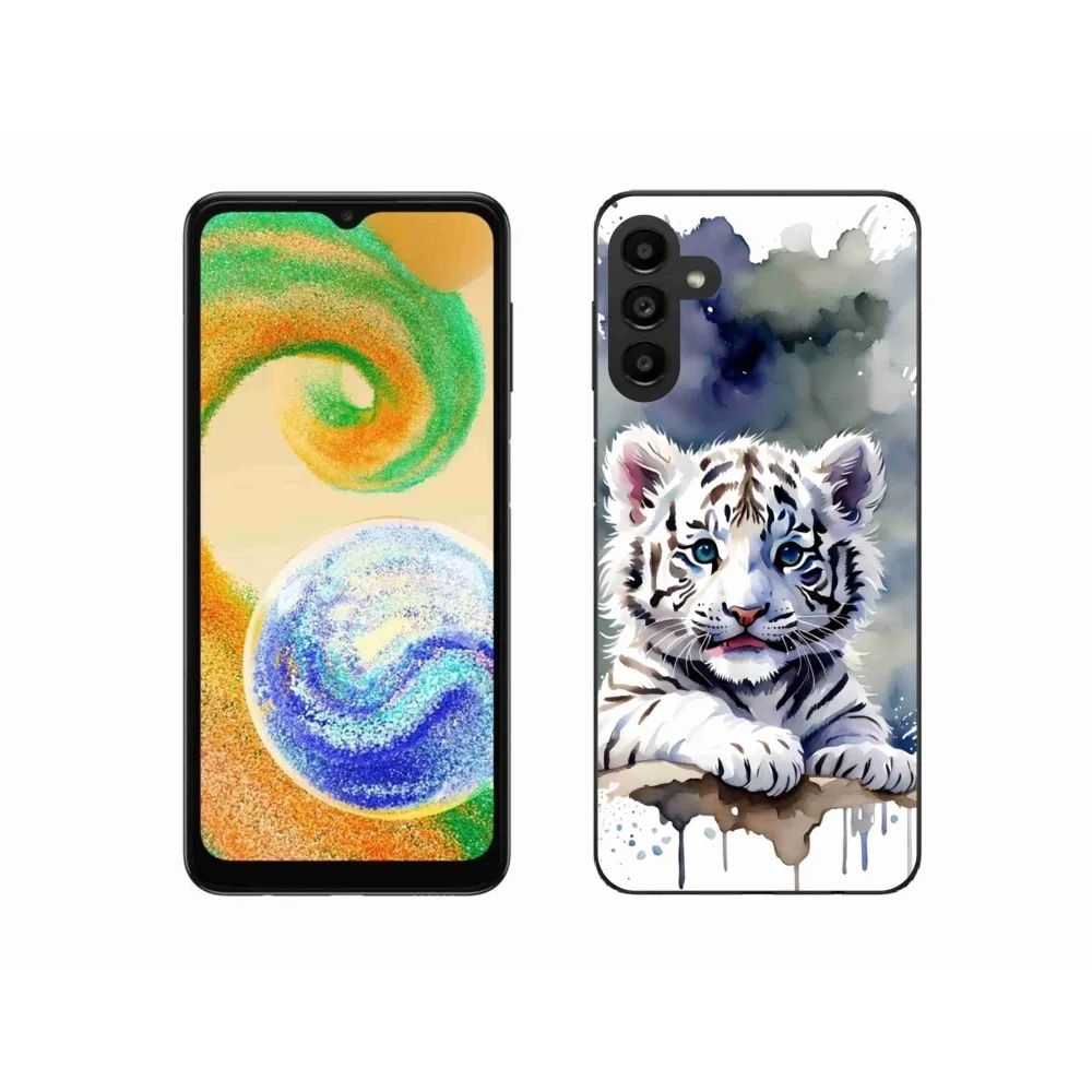 Psie púzdro na Samsung Galaxy A04s - mláďa bieleho tigra poskytuje všetky výhody gélových obalov, a to v zaujímavom dizajne.