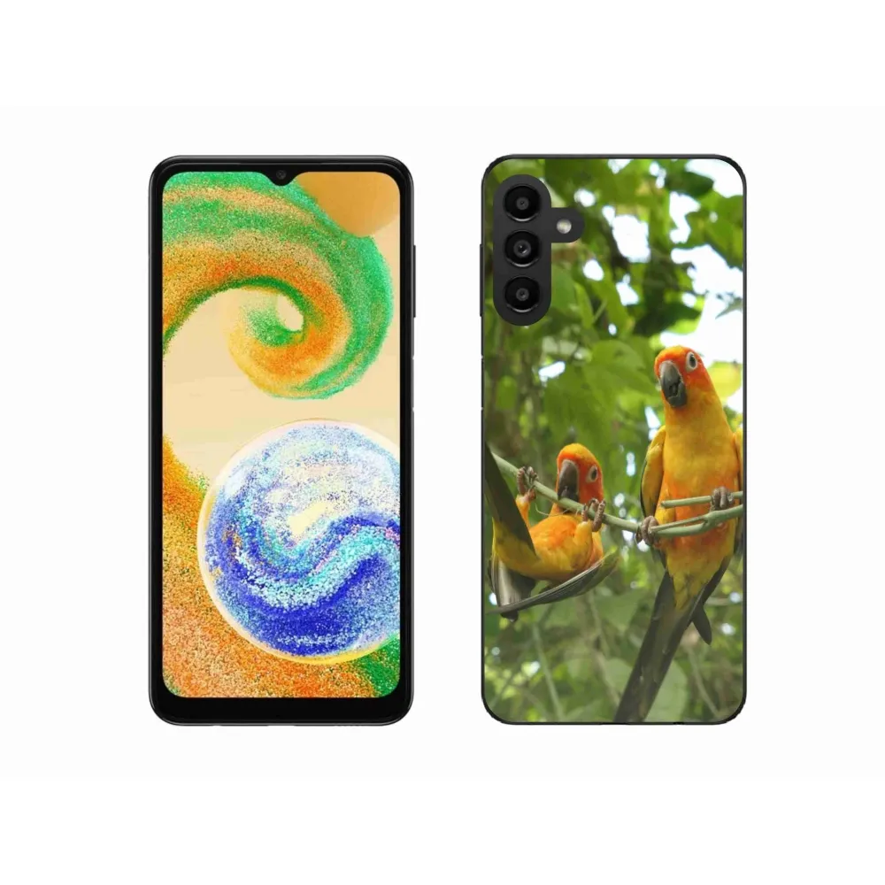 Zvieracie puzdro na Samsung Galaxy A04s - papagáje aratingy poskytuje všetky výhody gélových krytov, a to v zaujímavom dizajne.