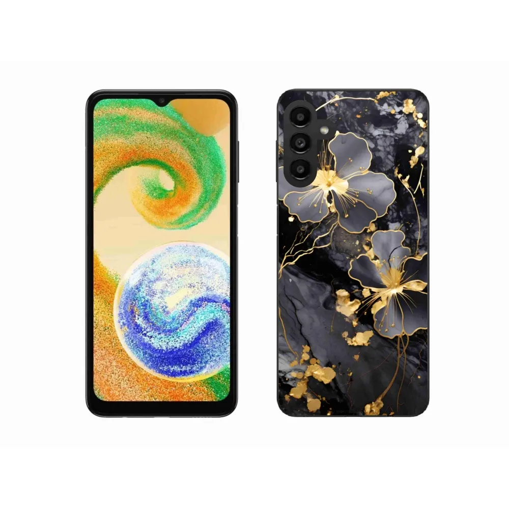 Pružný gélový obal mmCase s obrázkom na Samsung Galaxy A04s - zlaté kvety