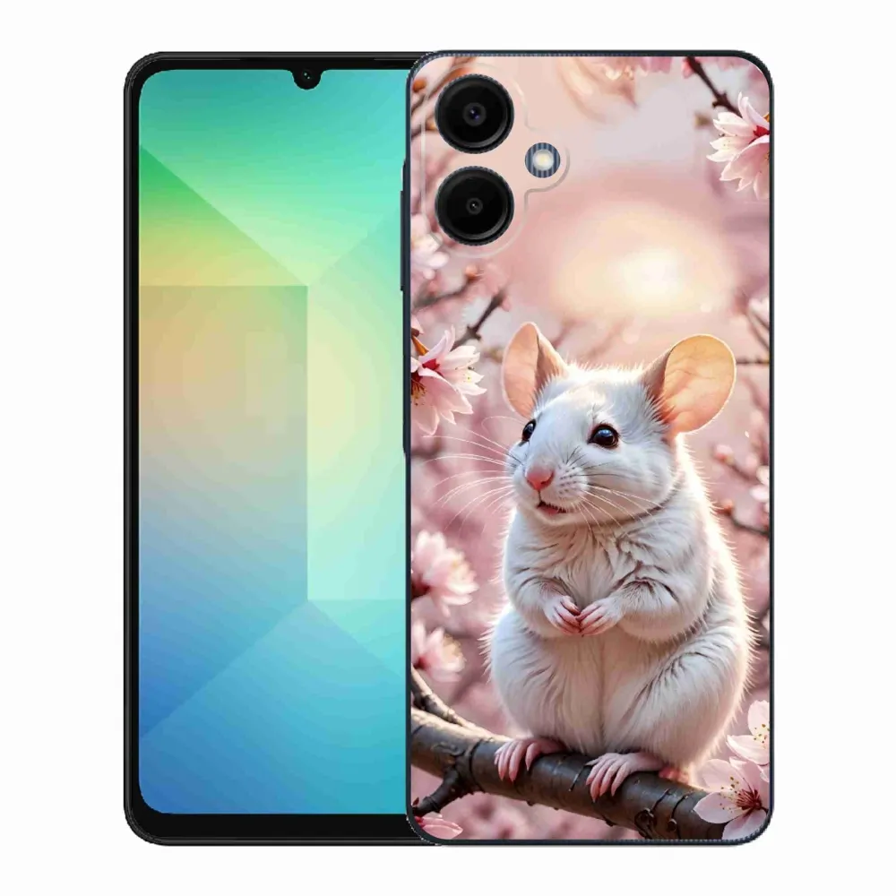 Pružný glový obal mmCase s obrázkom na Samsung Galaxy A06 - biela myš na vetve