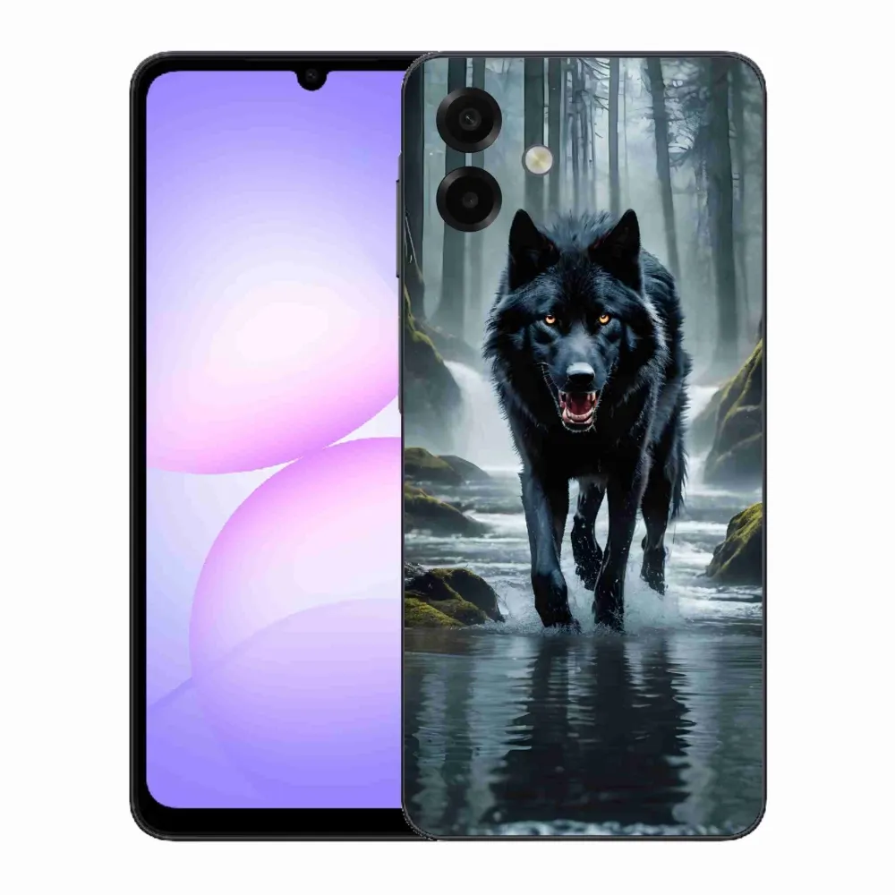 Pružný gélový obal mmCase s obrázkom na Samsung Galaxy A07 4G - čierny vlk