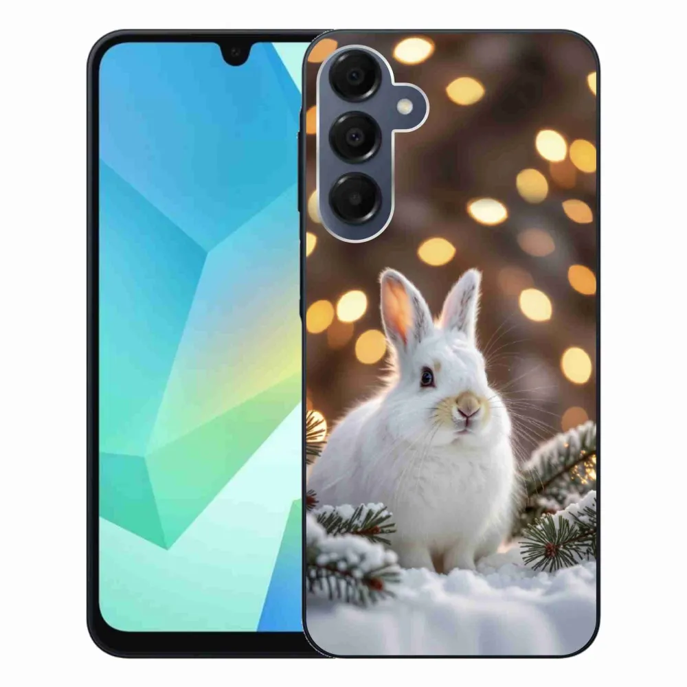Pružný glový obal mmCase s obrázkom na Samsung Galaxy A16 4G/5G - biely zajac