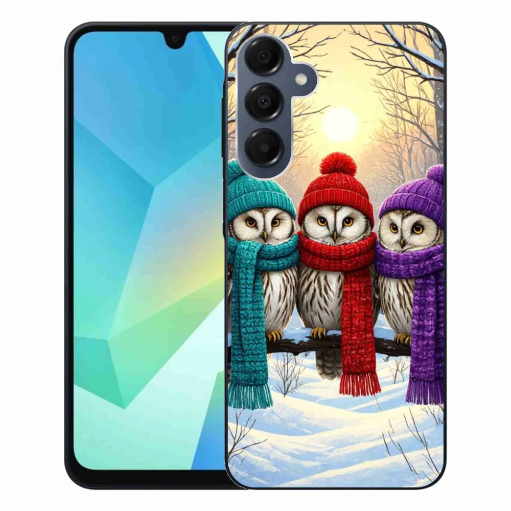 Vianočné puzdro na Samsung Galaxy A16 4G/5G - soví priatelia poskytuje všetky výhody gélových obalov, a to v zaujímavom dizajne.