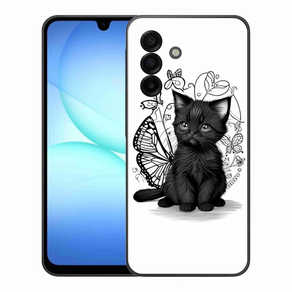 Pružný gélový obal mmCase s obrázkom na Samsung Galaxy A17 4G/5G - čierne mačiatko