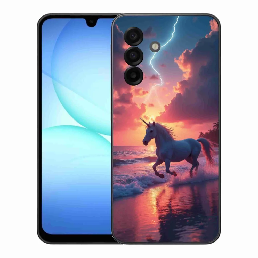 Púzdro s motívom koňa na Samsung Galaxy A17 4G/5G - jednorožec na pláži poskytuje všetky výhody gélových krytov, a to v zaujímavom dizajne.