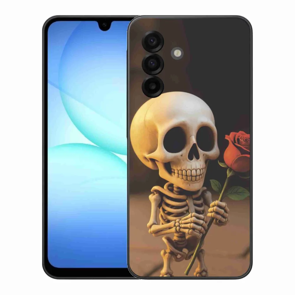 Púzdro na Samsung Galaxy A17 4G/5G - kostlivec s ružou poskytuje všetky výhody gélových obalov, a to v zaujímavom dizajne.