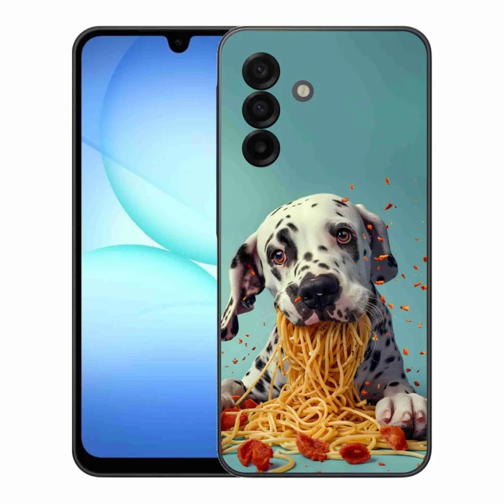 Pružný glový obal mmCase s obrázkom na Samsung Galaxy A17 4G/5G - dalmatín a špagety