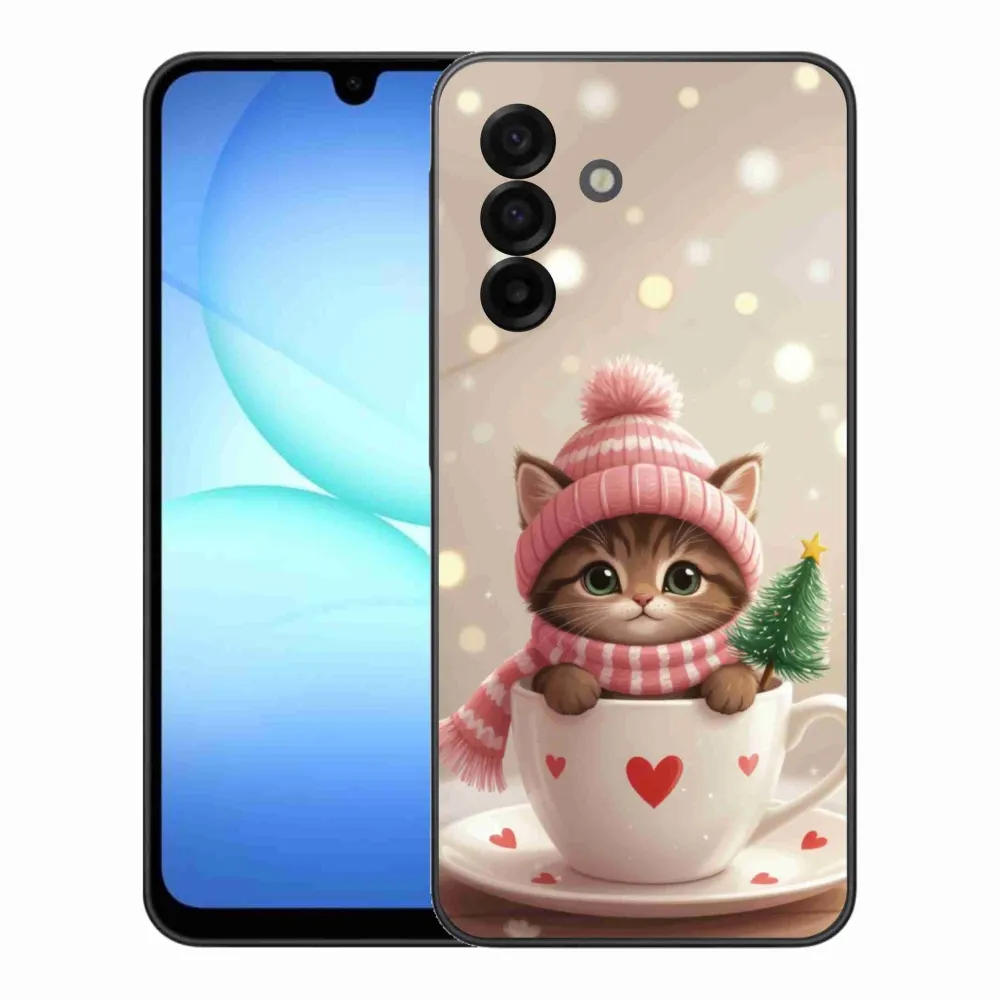 Pružný glový obal mmCase s obrázkom na Samsung Galaxy A17 4G/5G - vianočné mačiatko v hrnčeku