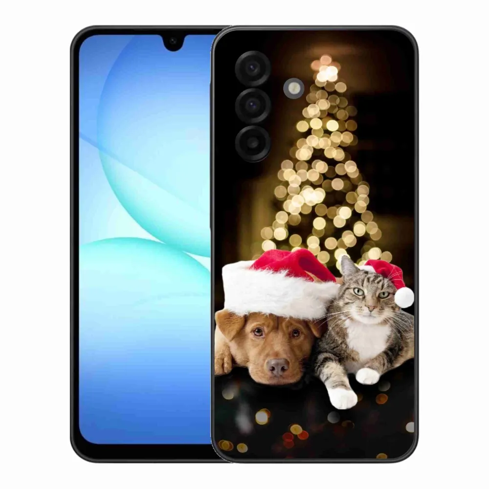 Vianočné puzdro na Samsung Galaxy A17 4G/5G - vianočný pes a mačka poskytuje všetky výhody gélových obalov, a to v zaujímavom dizajne.