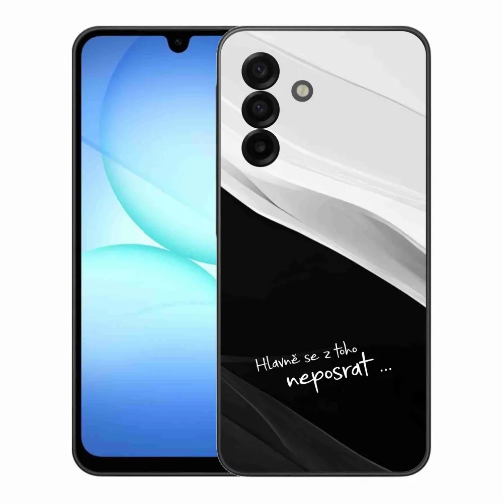 Pružný gélový obal mmCase s obrázkom na Samsung Galaxy A17 4G/5G - vtipný text 13 čiernobiele pozadie