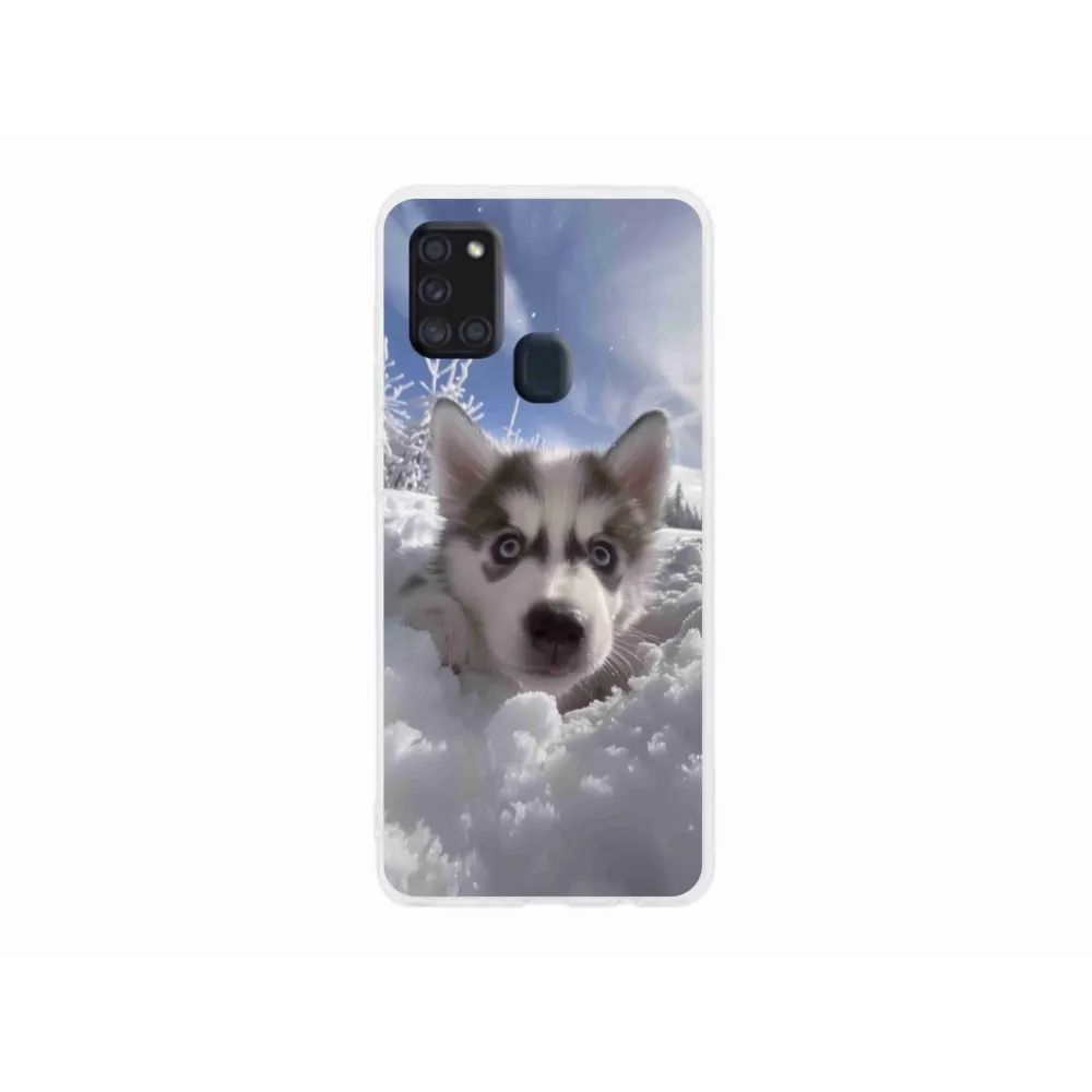 Pružný gélový obal mm Case s obrázkom na Samsung Galaxy A21s - husky v snehu