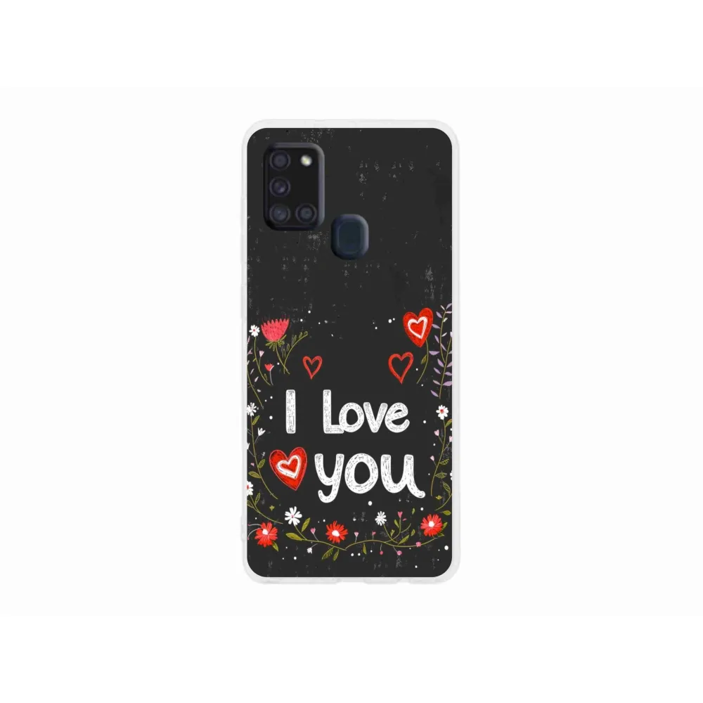 Pružný gélový obal mm Case s obrázkom na Samsung Galaxy A21s - I love you čierne pozadie