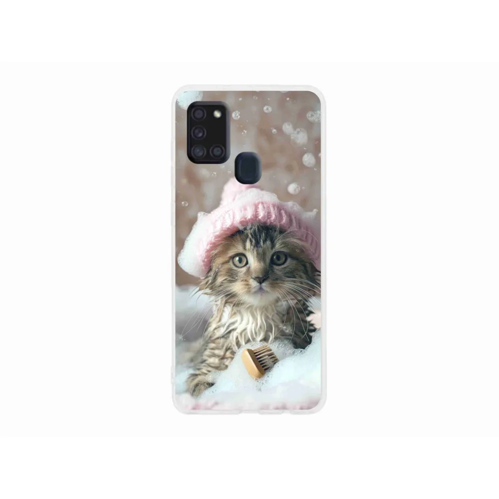 Pružný gélový obal mm Case s obrázkom na Samsung Galaxy A21s - mačiatko a kúpeľ