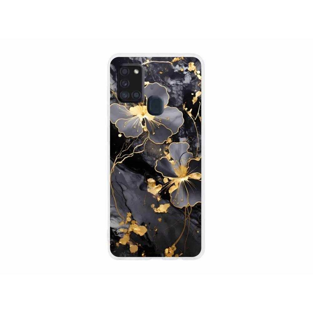 Pružný gélový obal mm Case s obrázkom na Samsung Galaxy A21s - zlaté kvety