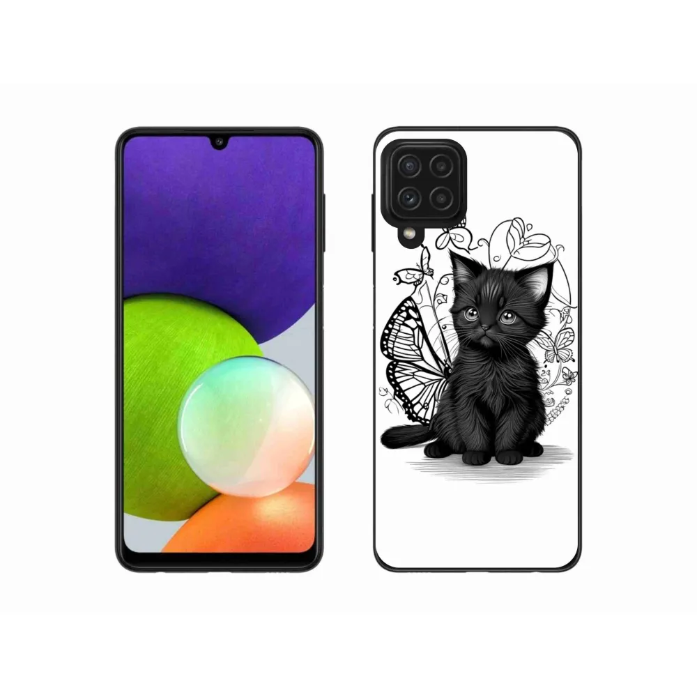 Pružný gélový obal mmCase s obrázkom na Samsung Galaxy A22 4G - čierne mačiatko