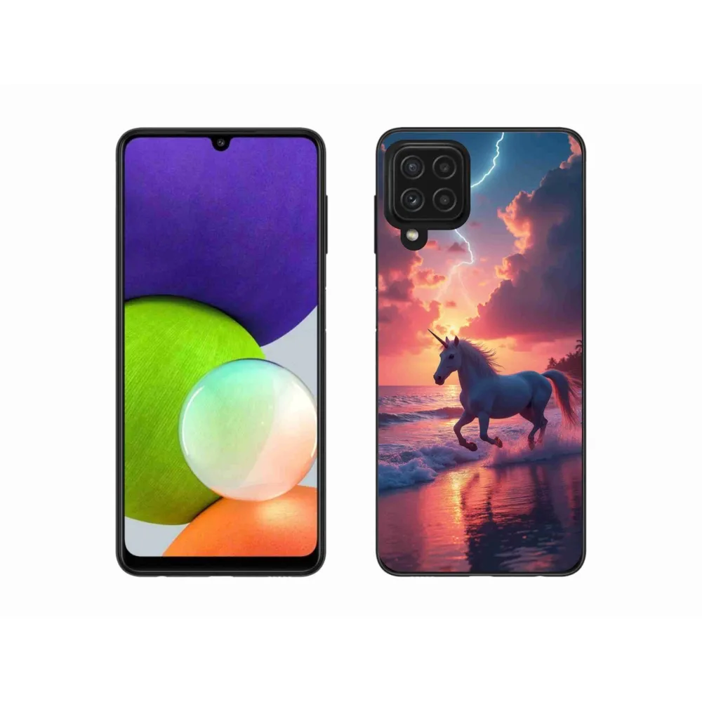 Púzdro s motívom koňa na Samsung Galaxy A22 4G - jednorožec na pláži poskytuje všetky výhody gélových krytov, a to v zaujímavom dizajne.