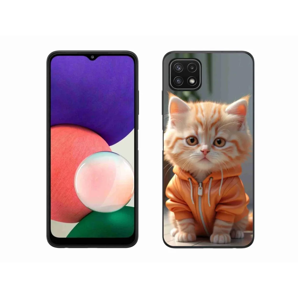 Pružný gélový obal mmCase s obrázkom na Samsung Galaxy A22 5G - mačiatko v mikine