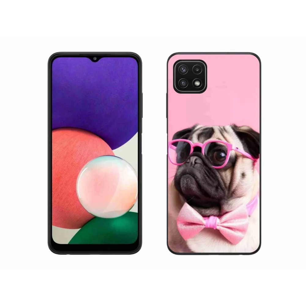 Psie púzdro na Samsung Galaxy A22 5G - štýlový mops poskytuje všetky výhody gélových obalov, a to v zaujímavom dizajne.