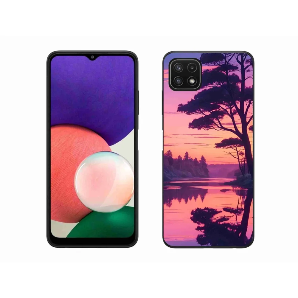 Púzdro na Samsung Galaxy A22 5G - západ slnka nad jazerom poskytuje všetky výhody gélových obalov, a to v zaujímavom dizajne.