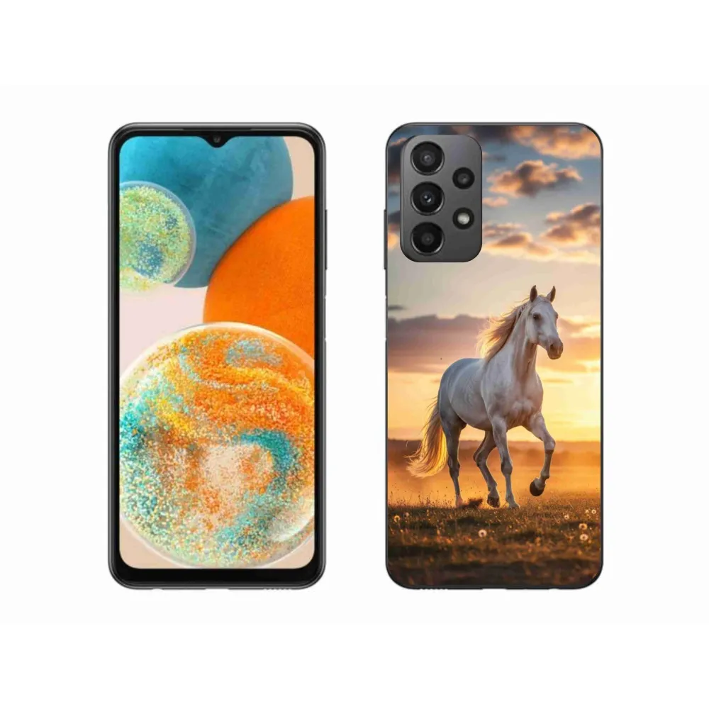 Pružný gélový obal mmCase s obrázkom na Samsung Galaxy A23 4G/5G - bežiaci biely kôň 2