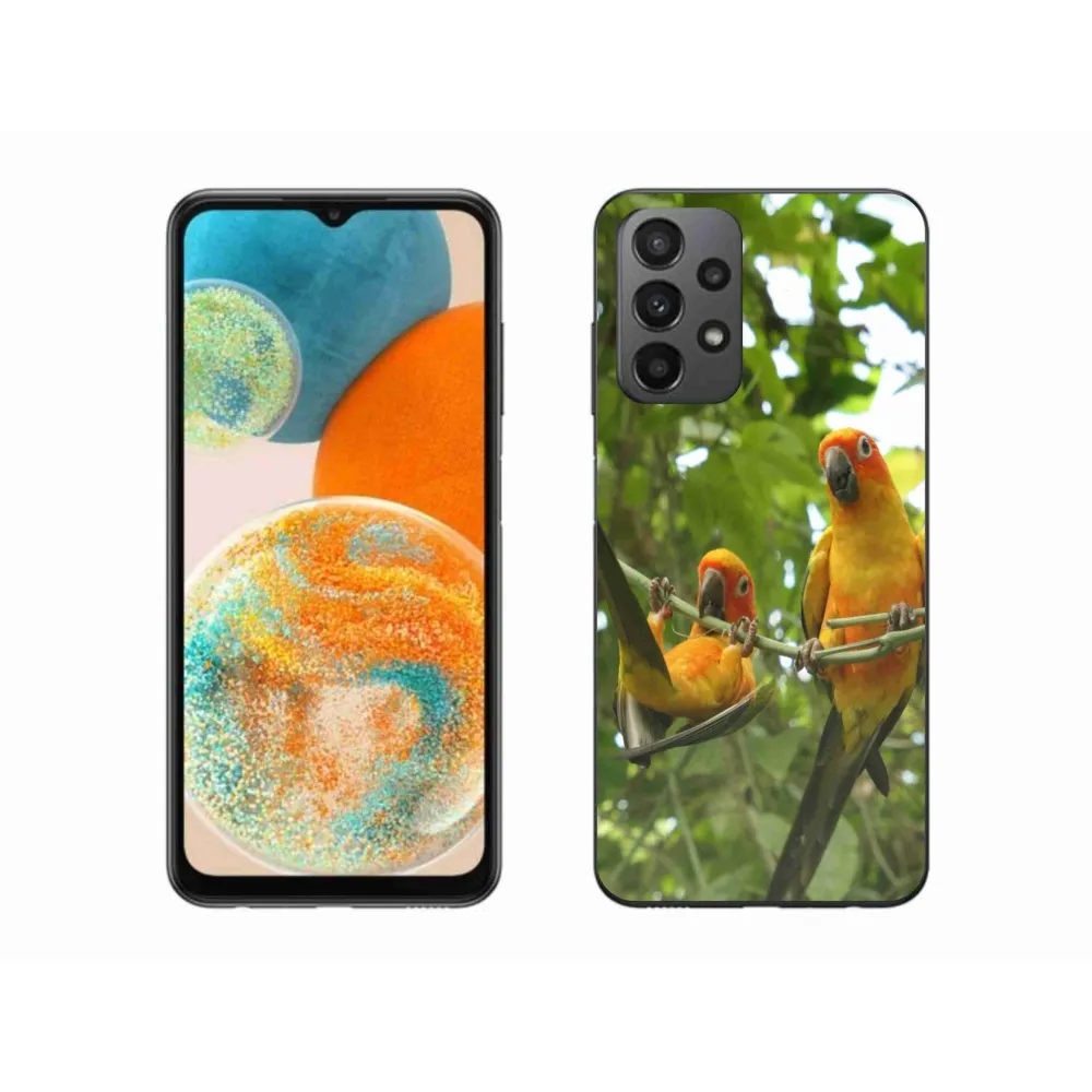 Zvieracie puzdro na Samsung Galaxy A23 4G/5G - papagáje aratingy poskytuje všetky výhody gélových krytov, a to v zaujímavom dizajne.