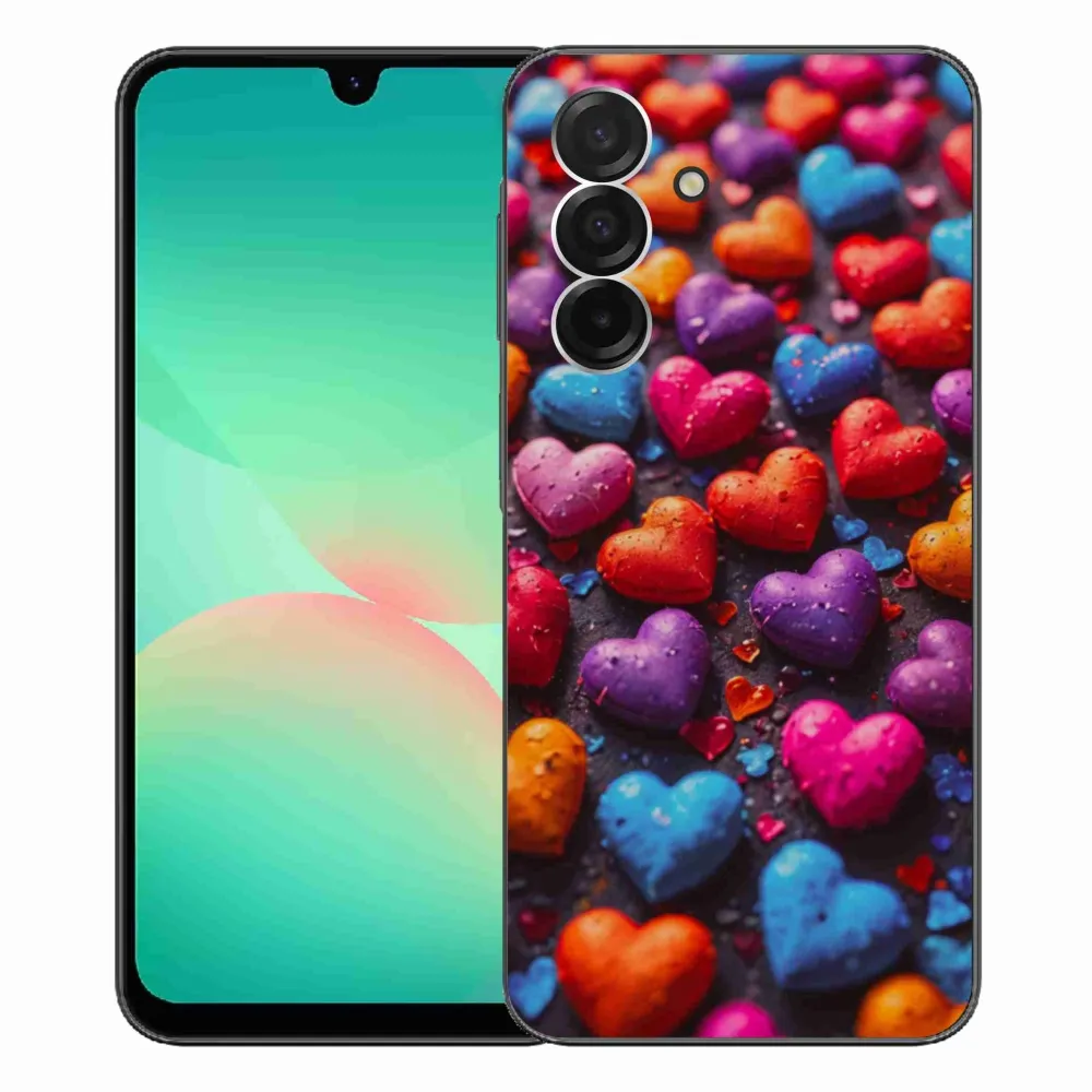 Puzdro na Samsung Galaxy A26 5G - farebné srdcia poskytuje všetky výhody gélových obalov, a to v zaujímavom dizajne.
