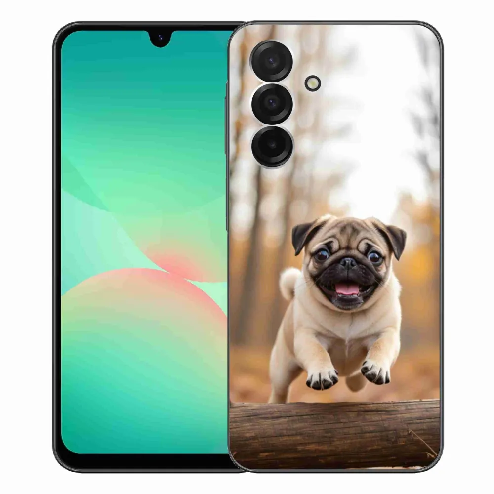 Psie púzdro na Samsung Galaxy A26 5G - mops 2 poskytuje všetky výhody gélových obalov, a to v zaujímavom dizajne.