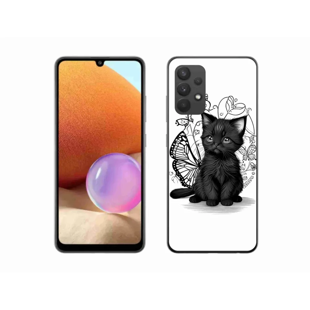Pružný gélový obal mmCase s obrázkom na Samsung Galaxy A32 4G - čierne mačiatko