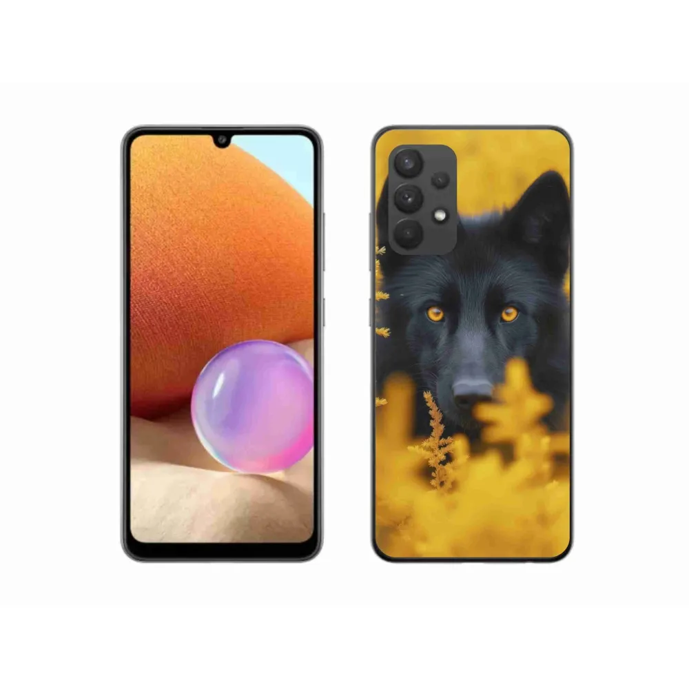 Pružný gélový obal mmCase s obrázkom na Samsung Galaxy A32 4G - čierny vlk 2