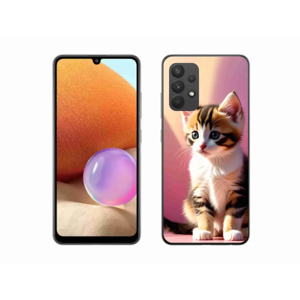 Pružný gélový obal mmCase s obrázkom na Samsung Galaxy A32 4G - zvedavé mačiatko 2