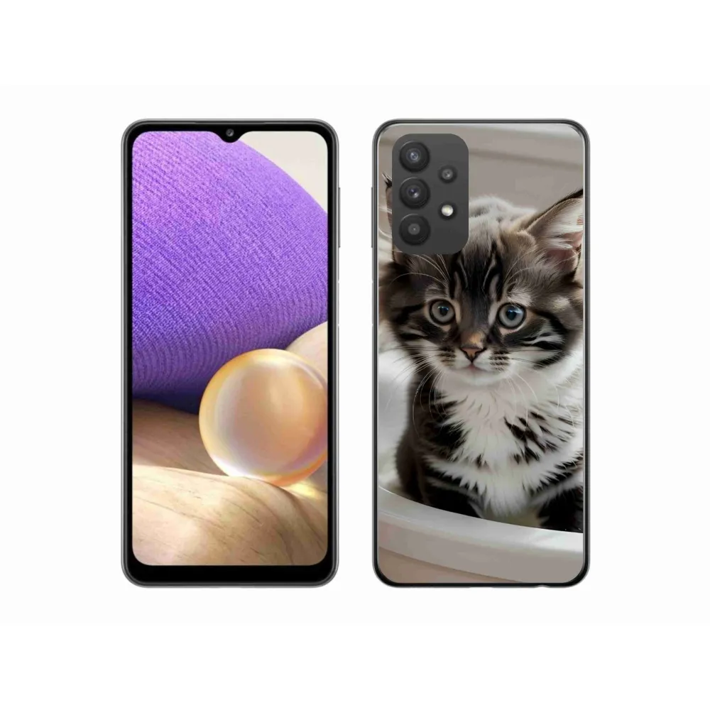 Pružný gélový obal mm Case s obrázkom na Samsung Galaxy A32 5G - zvedavé mačiatko