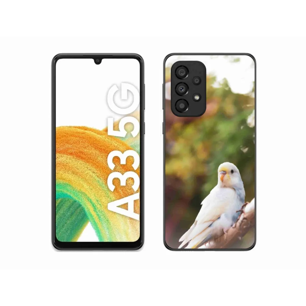 Zvieracie puzdro na Samsung Galaxy A33 - papagáj andulka biela poskytuje všetky výhody gélových krytov, a to v zaujímavom dizajne.