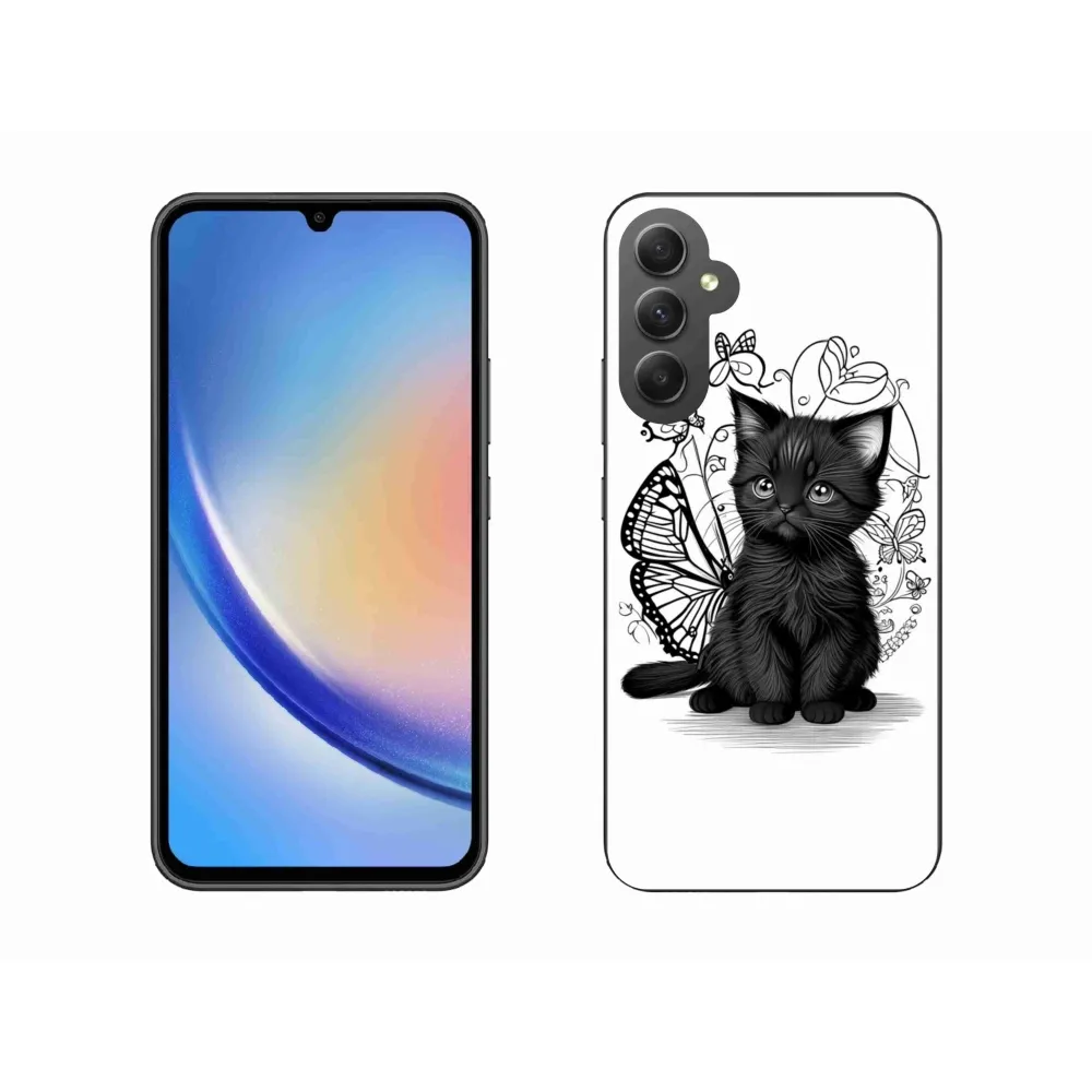 Pružný gélový obal mmCase s obrázkom na Samsung Galaxy A34 5G - čierne mačiatko
