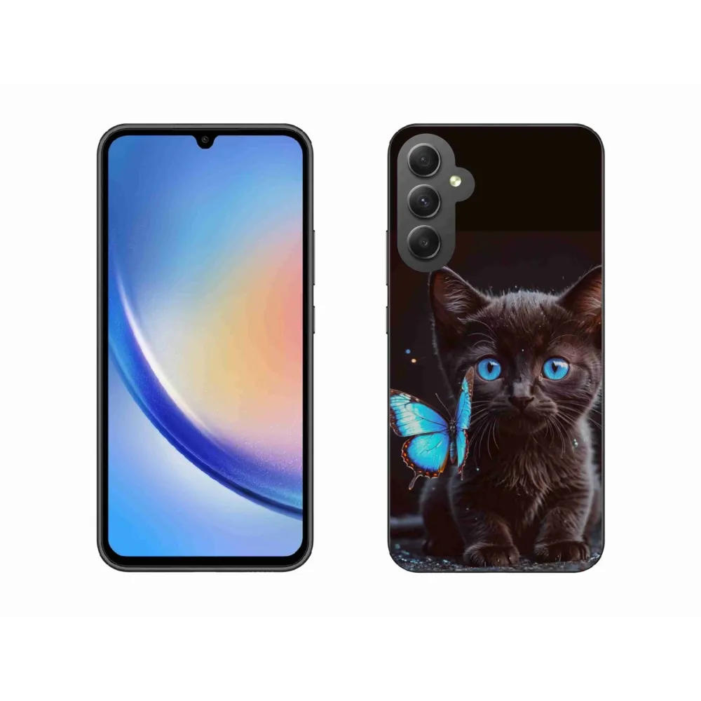 Pružný gélový obal mmCase s obrázkom na Samsung Galaxy A34 5G - čierne mačiatko 3