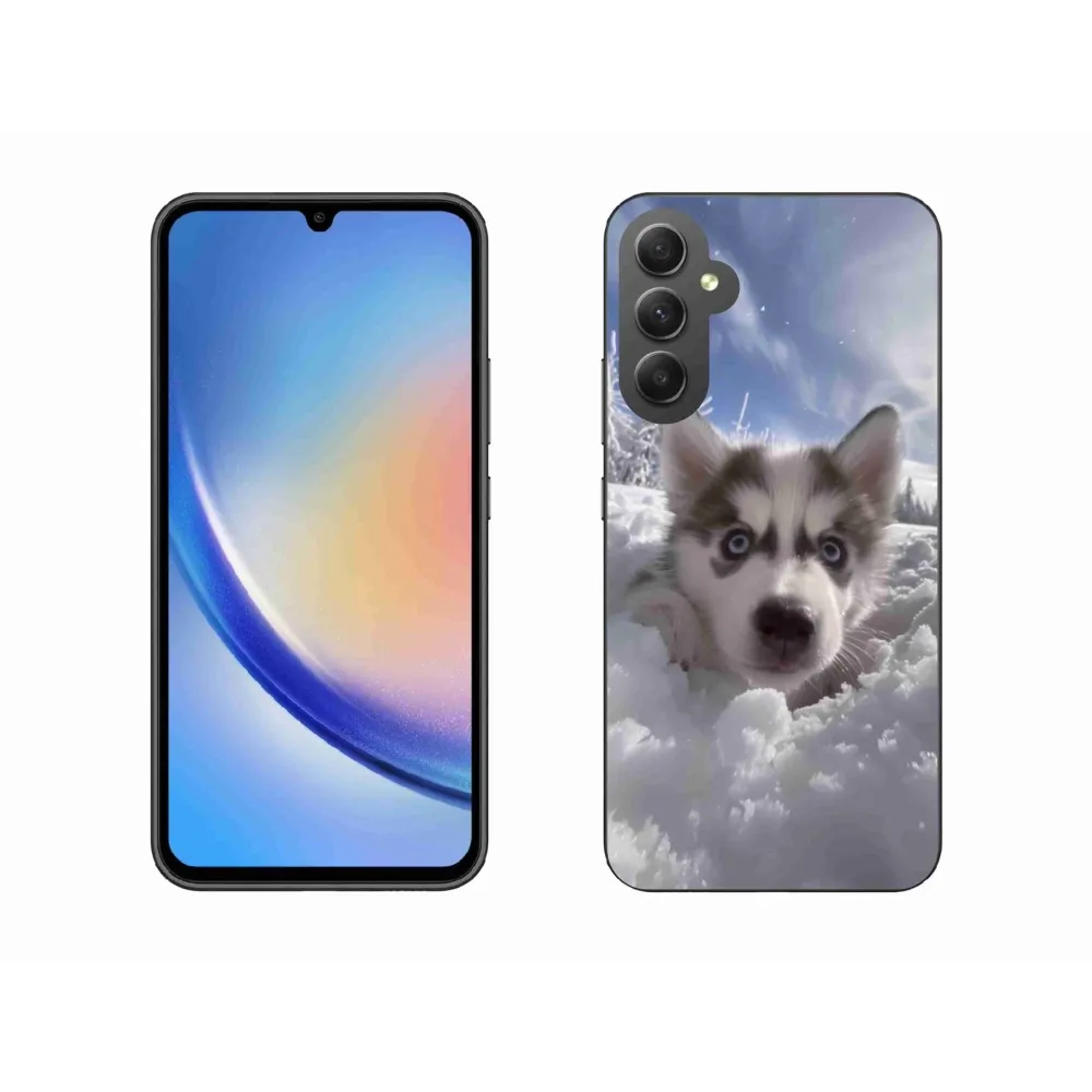 Pružný gélový obal mmCase s obrázkom na Samsung Galaxy A34 5G - husky v snehu