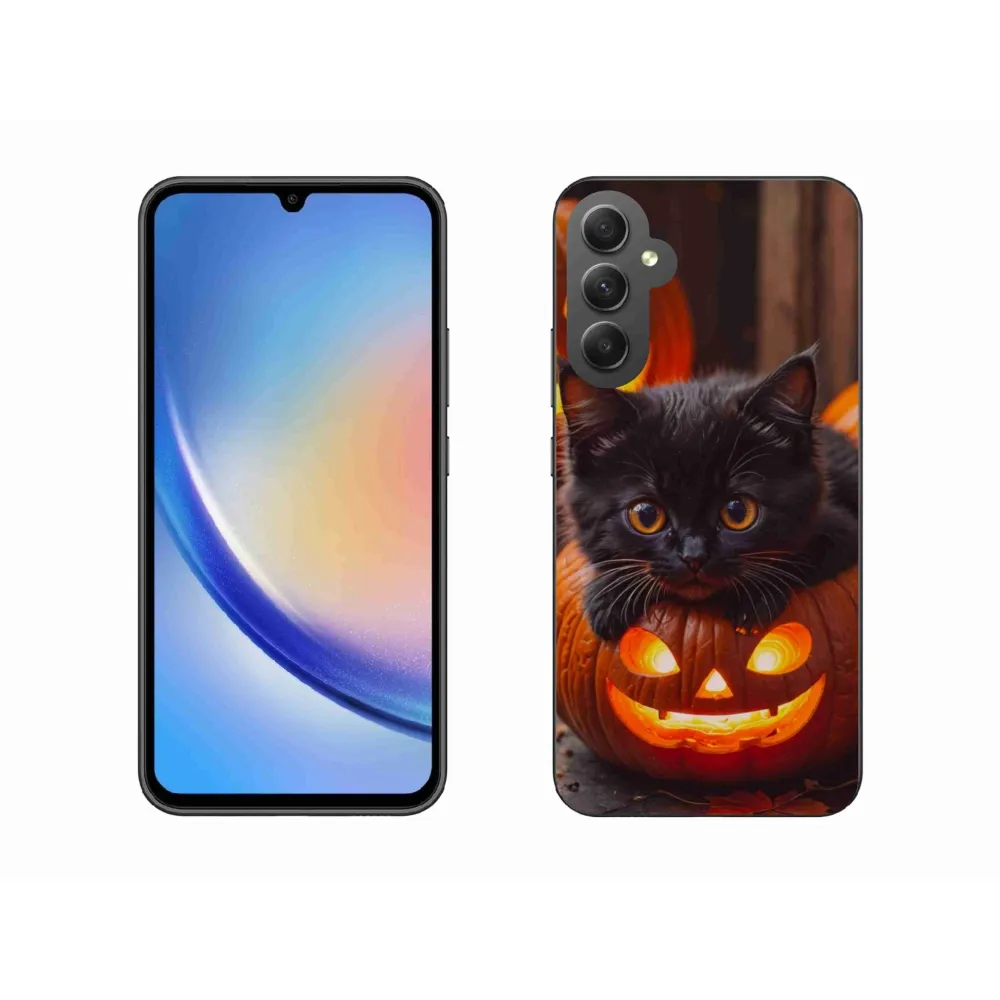 Gélový kryt mmCase na Samsung Galaxy A34 5G - mačiatko a tekvica