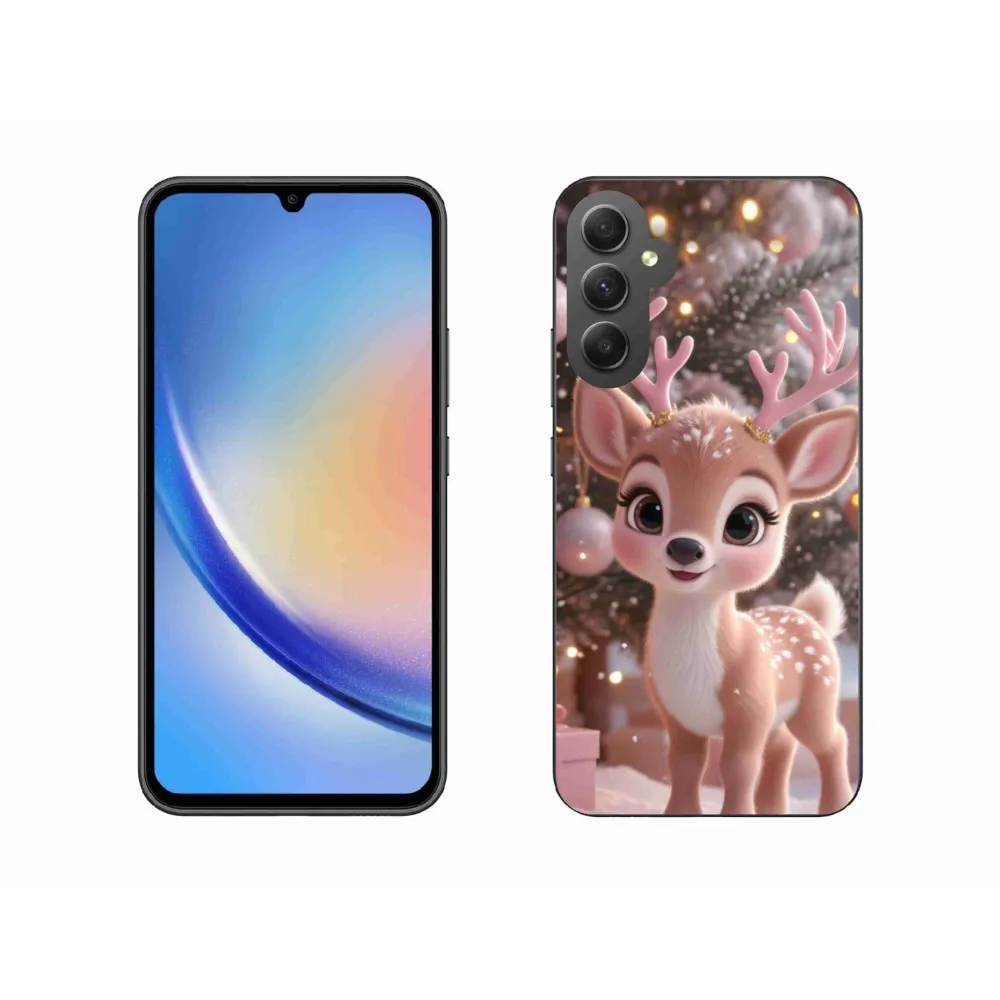 Vianočné puzdro na Samsung Galaxy A34 5G - roztomilý sob poskytuje všetky výhody gélových obalov, a to v zaujímavom dizajne.