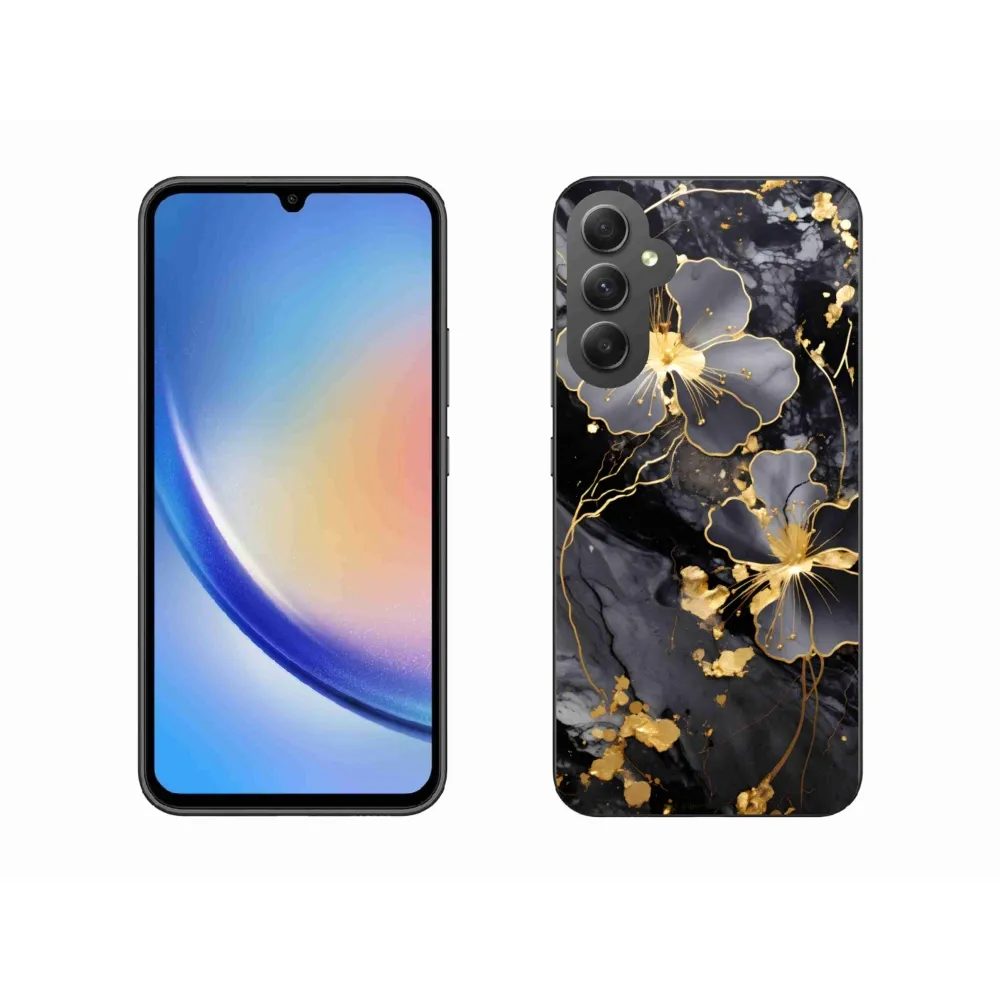 Pružný gélový obal mmCase s obrázkom na Samsung Galaxy A34 5G - zlaté kvety