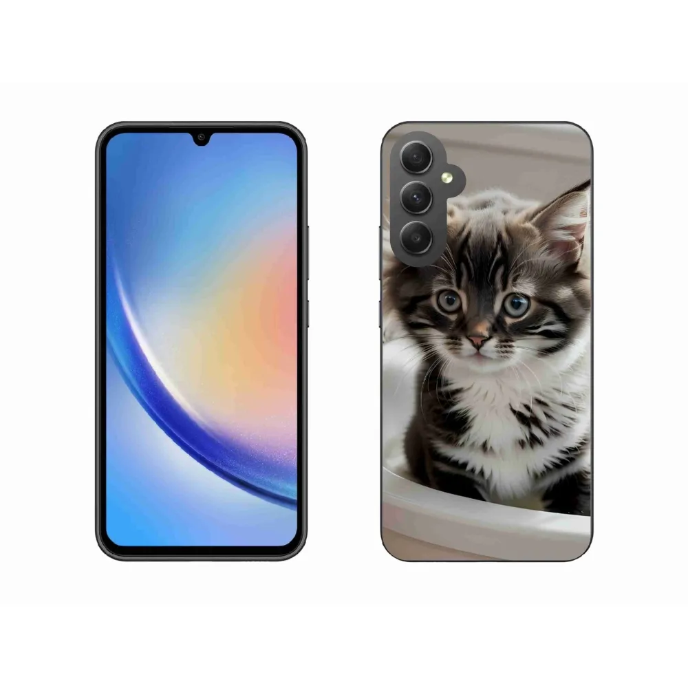 Pružný gélový obal mmCase s obrázkom na Samsung Galaxy A34 5G - zvedavé mačiatko