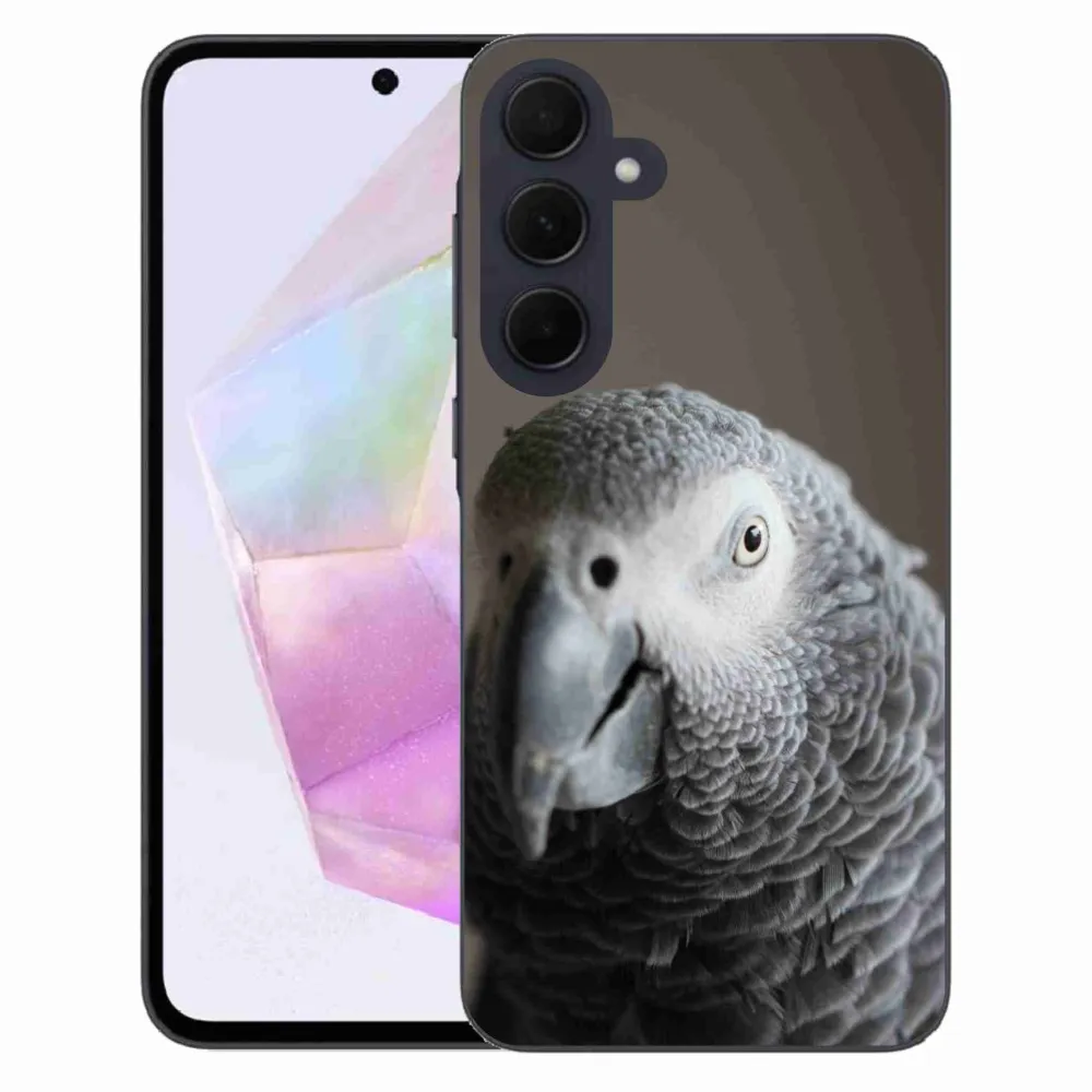 Zvieracie puzdro na Samsung Galaxy A35 5G - papagáj žako 2 poskytuje všetky výhody gélových krytov, a to v zaujímavom dizajne.