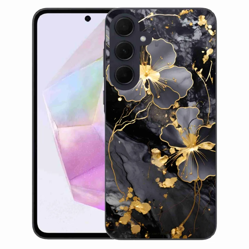Pružný gélový obal mmCase s obrázkom pre Samsung Galaxy A35 5G - zlaté kvety