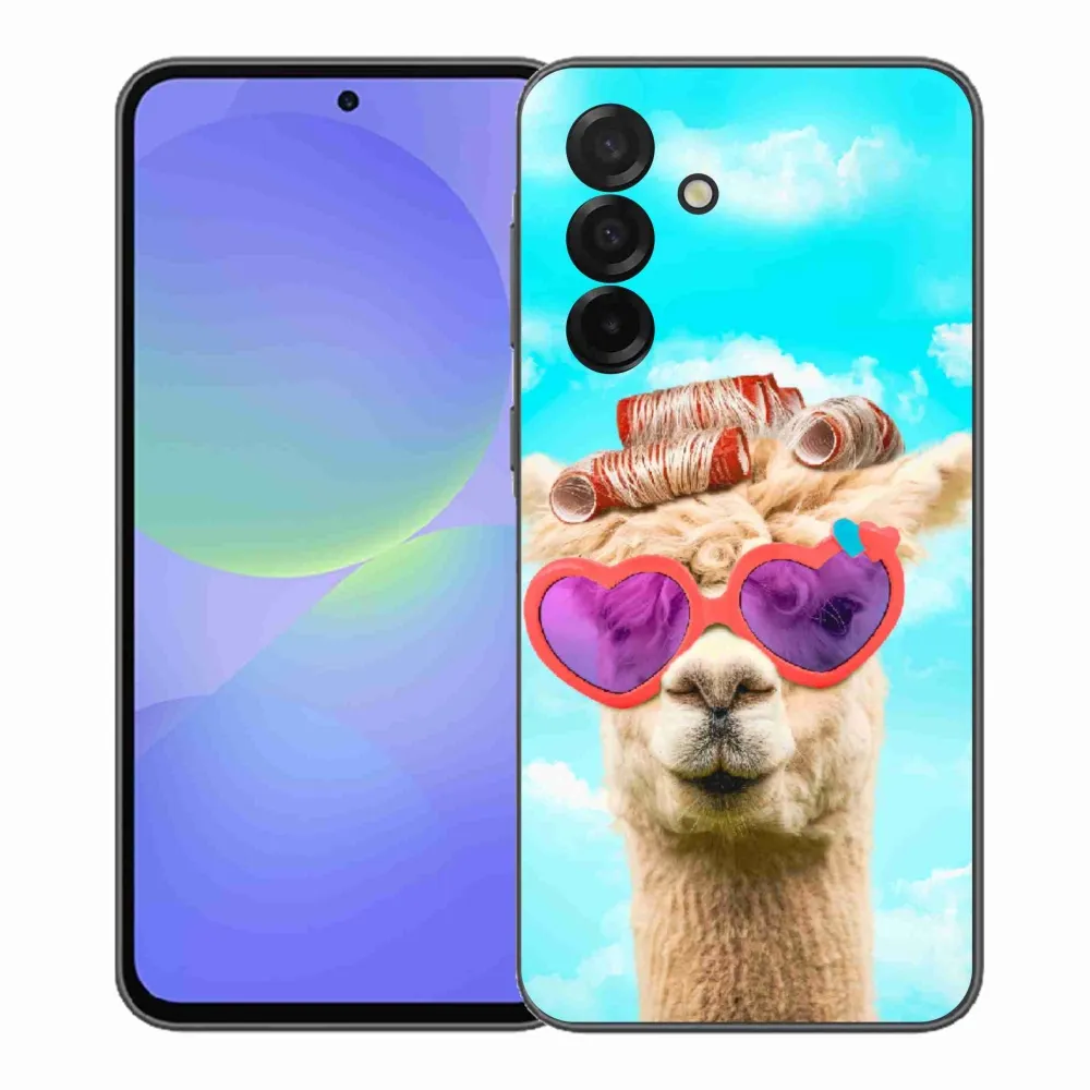 Pružný gélový obal mmCase s obrázkom na Samsung Galaxy A37 5G - lama s okuliarmi